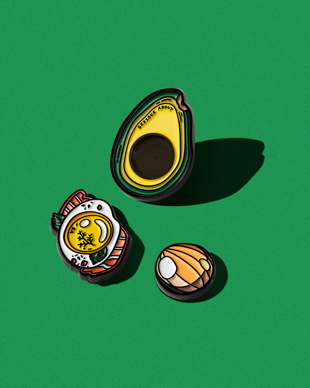 AVOCADO ON TOAST, ENAMEL PIN WITH MAGNETIC PARTS