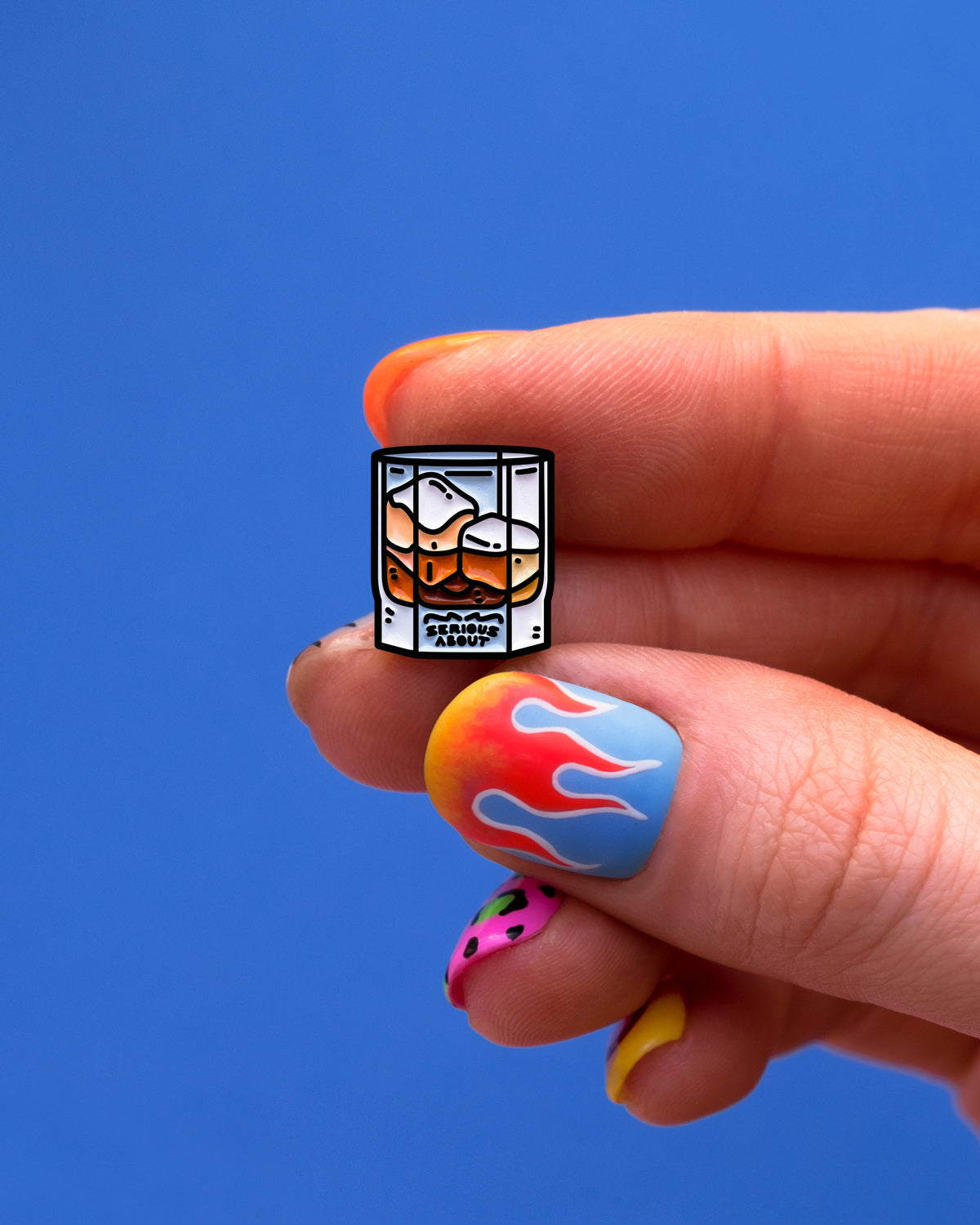A whiskey glass pin—small but bold, just like the best pours. Wear it with pride, because style, like whiskey, should be well-aged!