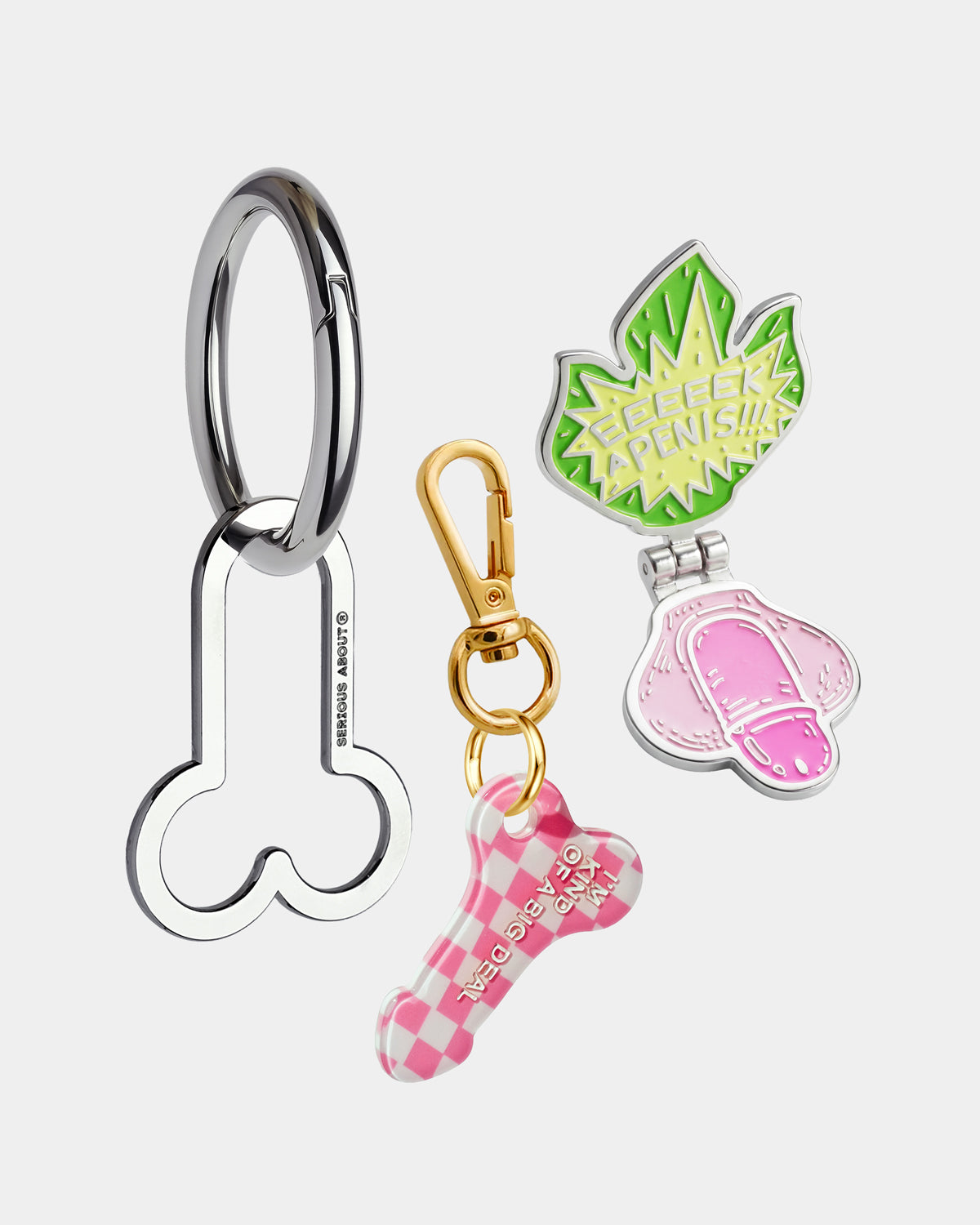 Two beloved wiener-themed keychains and a pin bundled together — the perfect gift for novelty collectors. Each keychain features a bold, colorful design and a premium finish. Mix and match styles or keep the complete set. Gift-ready packaging included.