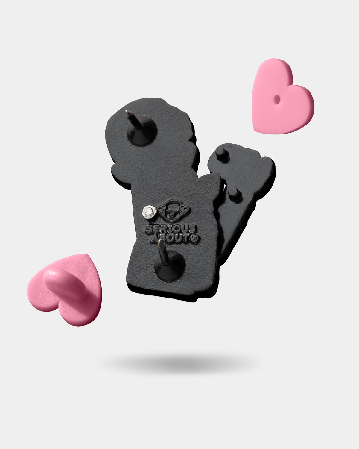 - Each pin is made and painted by hand, so there may (or may not) be slight differences in color and a small notch on the side, where the pin is attached when being painted.
