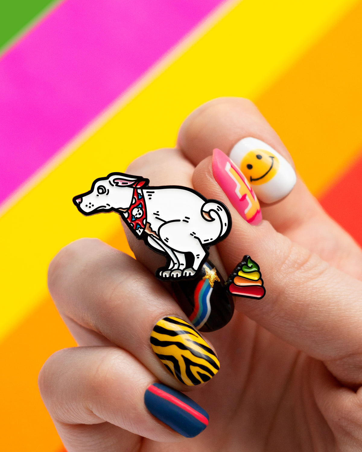 WHITE DOG RAINBOW POOP, ENAMEL PIN