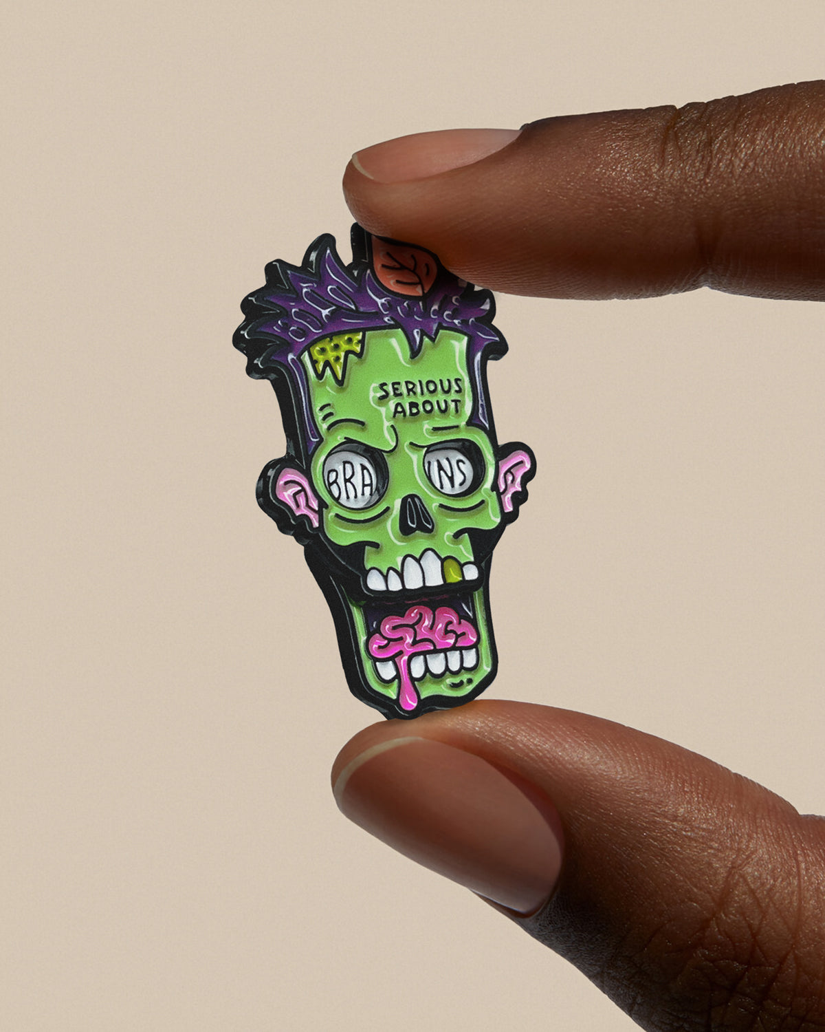 Creepy-cute Zombie Pin — a moving enamel pin for horror lovers, freelancers, and anyone whose clients have ever started with, “It’s just a tiny edit…”